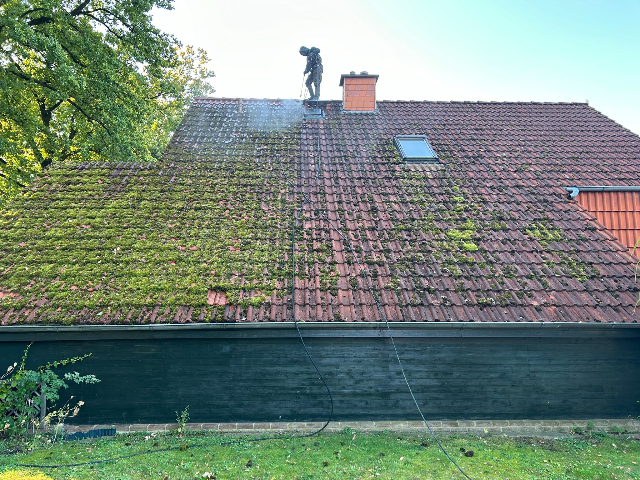 - Effektive Dachreinigung: Entfernen von Schmutz und Moos für ein gepflegtes Dach.